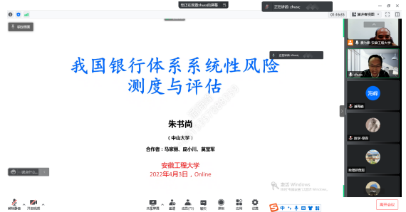 43日,数理与金融学院在线上举办了金融专题系列报告会,会议邀请了南京大学肖斌卿教授、西安交通大学陈志平教授、中山大学朱书尚教授作了专题报告。校党委常委、副校长费为银教授出席了报告会。数理与金融学院部分教师及相关专业研究生聆听了此次报告。