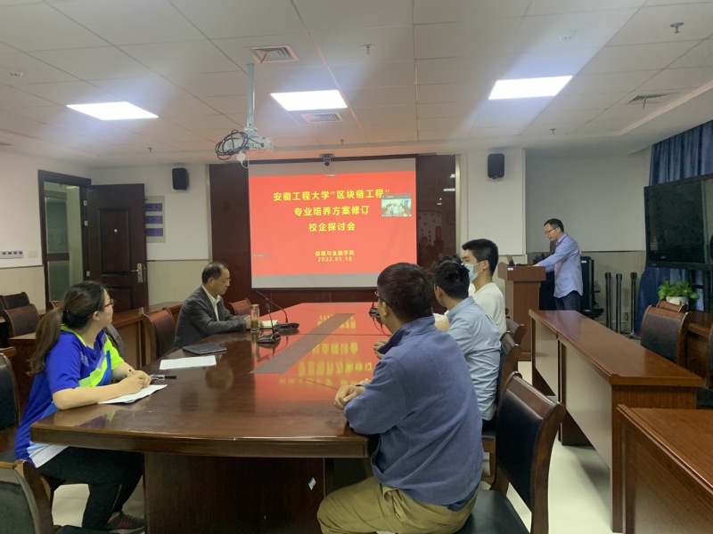 5月18日,数理与金融学院召开2022级区块链工程专业培养方案修订校企研讨会。趣链科技有限公司企业代表、数理与金融学院院长王传玉和区块链工程系的所有教师参加了本次研讨会。本次研讨会采用线上线下相结合的形式举行,区块链工程系主任邓寿年主持会议。