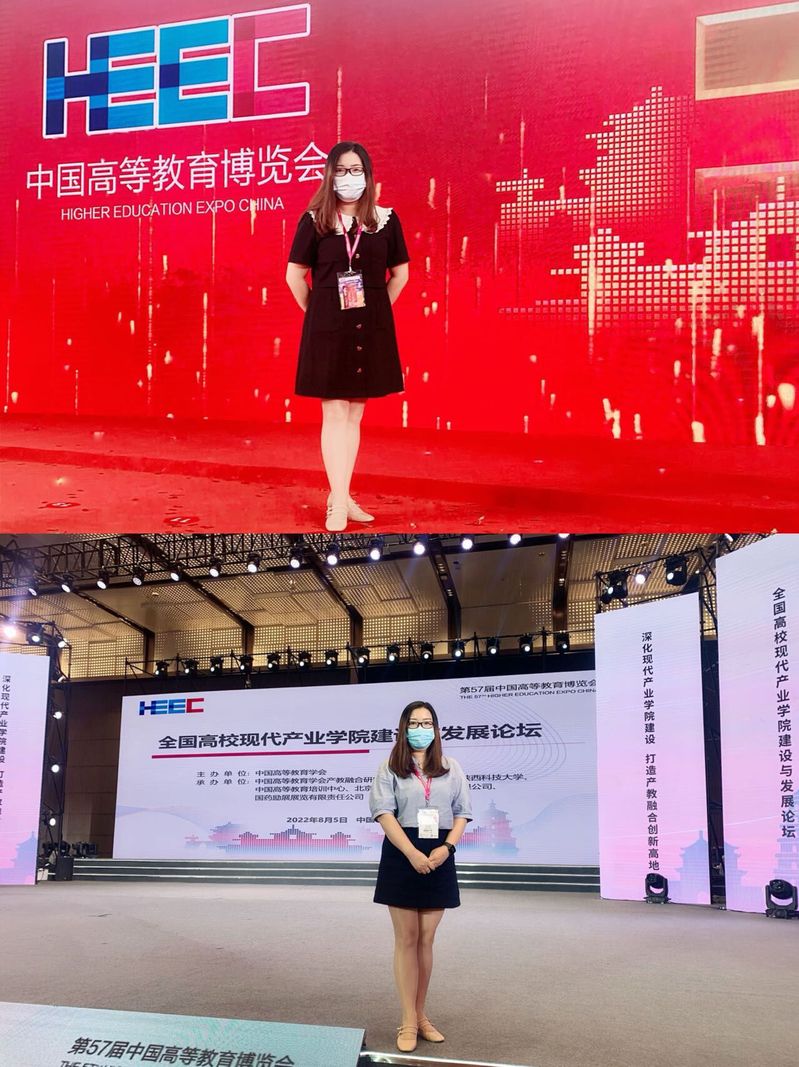 8月4日,第57届中国高等教育博览会在西安开幕,本届高等教育博览会主体活动由“展览展示”、“会议论坛”、“特色活动”、“高端发布”和“云端推送”五大板块组成。数理与金融学院区块链工程系副主任杨迎娟博士参加了“会议论坛”板块中的“全国高校现代产业学院建设与发展论坛” 。