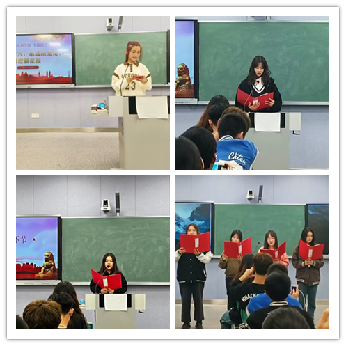 活动分为两个阶段,第一阶段是主题展示,通过视频回顾党的奋斗史、发展史,青年一代要勇于担负时代责任,接好时代的接力棒,做中国精神的守护者、传承人,中国力量的汇聚者,中国文化的传播者。青年学生代表通过诗朗诵、歌曲等形式体现了青年坚定不移听党话、跟党走的思想和行动自觉,展现青年昂扬向上的精神风貌。第二阶段是主题学习,互联网金融211班欧阳饶心围绕青年人的爱国情怀畅谈了学习党的二十大精神的体会,革命先辈用青春、用热血、用毕生努力奋斗创造了今天的幸福生活,新时代中国青年要坚定继承和发扬革命传统,大力弘扬以爱国主义为核心的民族精神,坚持爱国、爱党和爱社会主义高度统一,用真情投入和拼搏奉献彰显爱国主义情怀。统计222刘雨鑫围绕青年学子的使命担当分享学习党的二十大精神的心得体会,党的二十大报告寄语青年“青年强,则国家强。当代中国青年生逢其时,施展才干的舞台无比广阔,实现梦想的前景无比光明。”如今的青年一代身处中华民族伟大复兴新征程,青年人有无穷的潜力和机会,将人生理想融入国家和民族的事业中,做时代前列的奋斗者、开拓者、奉献着。活动还设计了党的二十大知识竞答等趣味环节。