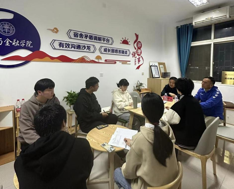4月23日是“世界读书日”,为促进同学们阅读交流,养成“爱读书、好读书、读好书”的习惯,引领读书风尚,数理与金融学院在男生宿舍11栋“评理说事大课堂”举行第二期“圆桌漫谈”读书分享会。此次活动特邀校党委委员、纪委副书记、纪委办主任张开炳老师与学院22级读书兴趣小组同学交流分享读书心得体会。学院党委书记周毅仁、互联网金融系学生党支部书记、辅导员张犇参加。读书分享会由金融222班陆毅同学主持。