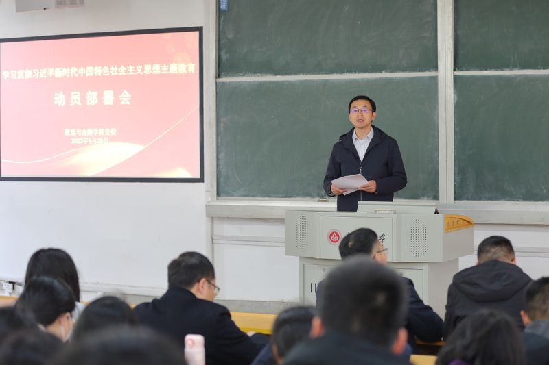 4月26日,数理与金融学院党委学习贯彻习近平新时代中国特色社会主义思想主题教育动员部署会在2J107召开。会议由学院党委副书记、院长吴小太主持,学院师生党员参加了会议。