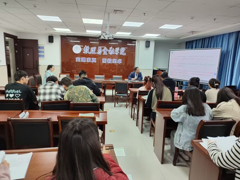 为深入推进学习贯彻习近平新时代中国特色社会主义思想主题教育工作部署,落实学校“三抓”“三全六专”工作要求,提高党员政治素质和学习能力,5月11日下午,数理与金融学院金融研究生党支部邀请学院副院长潘海峰为支部党员开展《防范金融风险分析-全球视角》专题党课。