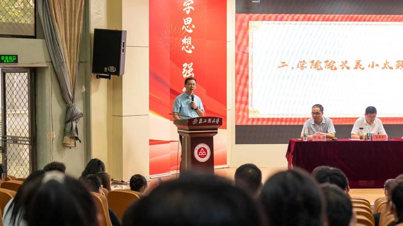 吴小太向新生们介绍了学院的学科建设、专业设置、师资队伍、人才培养、就业去向等基本情况。他希冀新生能够立德树志、勤奋学习、潜心求知问学,积极参加校内外实践活动,锻造一个强健的体魄,能够及时规划人生,不虚度大学时光。