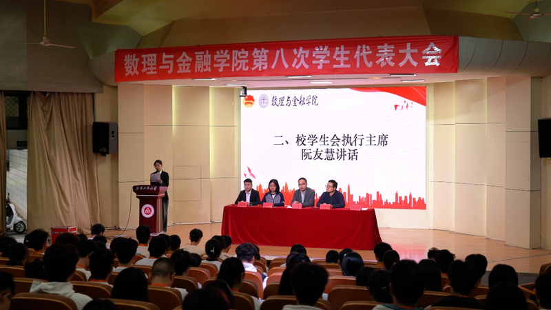 10月19日,数理与金融学院在学术报告厅召开第八次学生代表大会,学院党委副书记何志恒、校学生会执行主席阮友慧、学院辅导员及学生代表参加大会。