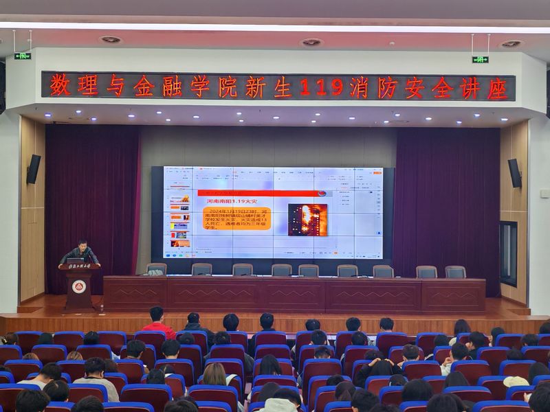 为落实学校2024年“119消防宣传月”活动工作要求,宣传和普及消防知识,提高学生的消防安全意识,切实维护校园、宿舍消防安全,11月12日,数理与金融学院在图书馆五楼会议室举办消防安全专题讲座。学校保卫处消防科李岗主讲,学院全体2024级学生参加。