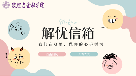 为深入开展“12·5”心理健康教育宣传月活动,进一步聆听学生心声,贴近学生需求,传播心理健康理念,提升心理育人实效,11月28日至12月5日,数理与金融学院开展“你的烦恼,说给我听”解忧信箱心理健康教育活动。