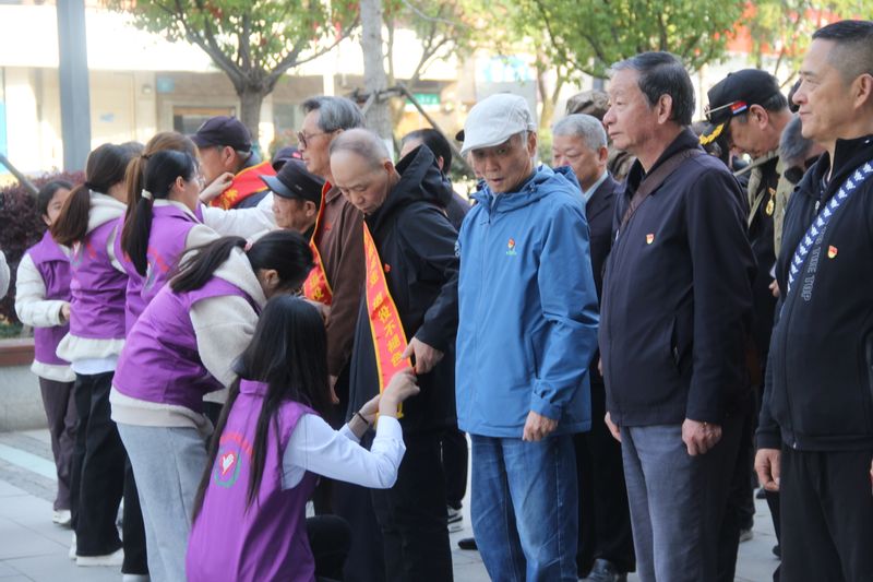 活动当天,40位退役老兵身着整齐军装,胸前佩戴着党徽和荣誉勋章出席活动,学院志愿者怀着崇敬之情为老兵们佩戴绶带。志愿者引导退役军人乘坐芜湖轻轨,为同学们讲述了英烈故事,共同开启“红色记忆”之旅。