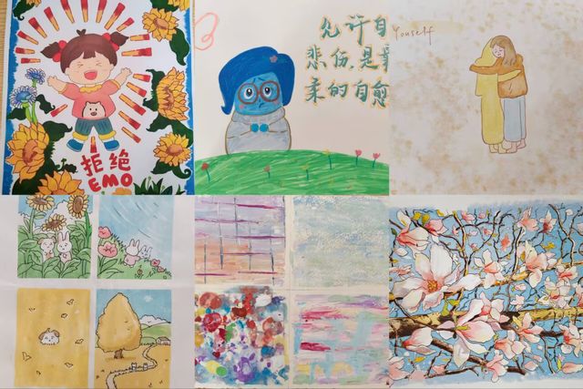 在“心灵画卷,艺术抒发”活动中,学生会与各班班长及心理委员紧密合作,进行了广泛而精准的宣传,鼓励同学们通过绘画、诗歌等艺术形式表达内心情感。活动共吸引514名同学参加,征集作品332件。作品以抽象涂鸦、手绘漫画或原创诗歌的形式,展现了同学们压力释放与自我探索的过程。此外,还有同学组队合作,创作出富有创意的作品。此次活动不仅为学生提供了一个情绪宣泄的渠道,还通过艺术疗愈的方式帮助他们增强心理韧性,进一步推动了校园心理健康教育的有效实施。