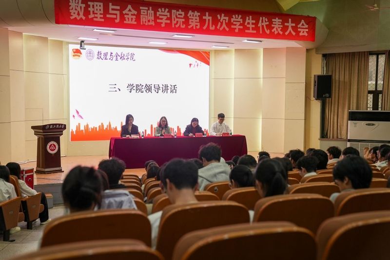 10月29日,数理与金融学院第九次学生代表大会在校学术报告厅召开,学院党委书记彭海燕、团委副书记程安琪、校学生会主席朱玥及全体学生代表参加大会。