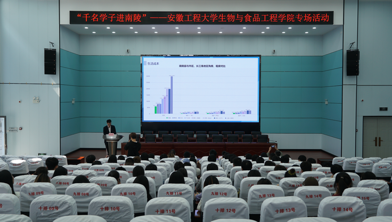 吴杰代表南陵县人社局对同学们参加此次“千名学生进南陵”活动表示热烈欢迎,他向现场师生介绍了南陵县的基本概况,并诚挚欢迎同学们加入南陵县各大企业。伍俊向大家致介绍了南陵县各项人才政策,并提到,南陵县目前的用工服务形式趋于多样化,生活成本低于周边其他城市,将努力打造省级人才社区标杆。王彦青介绍了学院专业分布及近年毕业生考研就业状况,希望与地方政府和用人单位加强沟通联系,通过校友讲座、校园招聘、实习实践等方式提升合作水平,共同推进人才培养和地方经济发展。