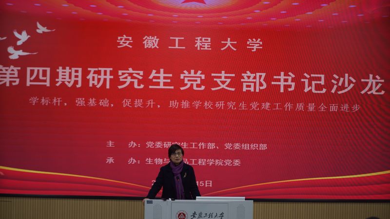 为深入贯彻落实学校党建“三抓”工作要求和“三全六专”育人实践,1215日,由党委研究生工作部、党委组织部主办,生物与食品工程学院党委承办以“学标杆,抓基础,促提升,助推学校研究生党建工作质量全面进步”为主题的第四期研究生党支部书记沙龙在5217举行。校党委副书记苏国红出席活动,活动特邀请第二批全国高校“百个研究生样板党支部”南京工业大学化工学院研究生第四党支部书记戴云一行参与。校党委常委、党委组织部部长王弘、相关职能部门、学院负责人、各学院研究生党支部书记、研究生功能型党支部书记、研究生辅导员、研究生党员代表、研究生会学生干部代表等参加活动,活动由党委研究生工作部部长王勇智主持。