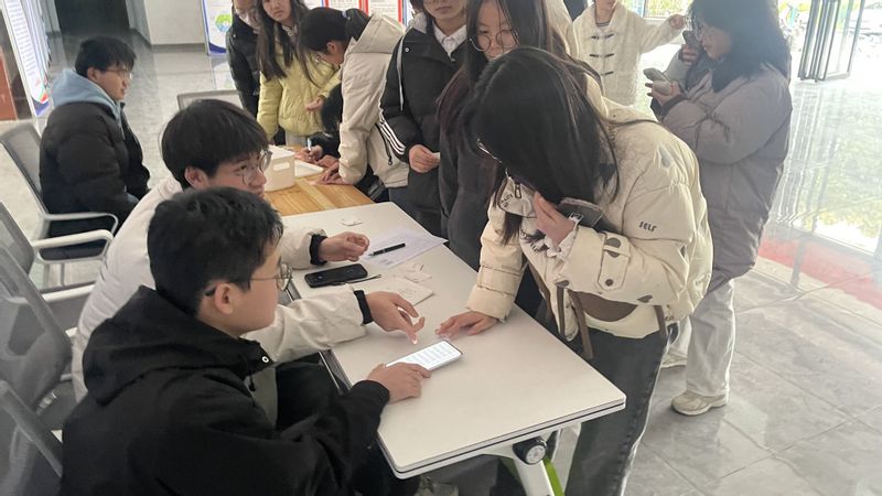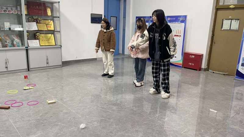 本次活动共有心愿箱、emoji猜猜乐、趣味套圈三个项目,每个项目都各具特色。走进活动现场,首先映入眼帘的是心愿箱,小小的箱子承载着大家满满的期待,同学们纷纷写下心愿,轻轻投入箱中。无论是对学业的期许,还是生活中的小愿望,都在这里找到了寄托。纸条上的一字一句,都是梦想启航的起点,也是对未来的美好憧憬。再看“emoji猜猜乐”区域,笑声此起彼伏。大家三两成群,对着屏幕上的emoji表情绞尽脑汁,又在猜出答案的瞬间欢呼雀跃。从流行热梗到经典成语,小小的emoji表情串联起了大家的奇思妙想,在欢乐中拉近了彼此的距离。趣味套圈游戏现场更是热闹非凡,五颜六色的奖品摆放整齐,同学们手持套圈,眼神专注,小心翼翼地抛出手中的套圈。套圈者在套中奖品的那一刻,兴奋与喜悦溢于言表,活动现场弥漫着快乐的气息。