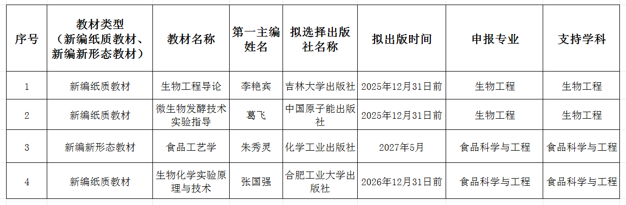 【公示】生物与食品工程学院2025年度校级教材建设(高水平教材培育)项目推荐公示