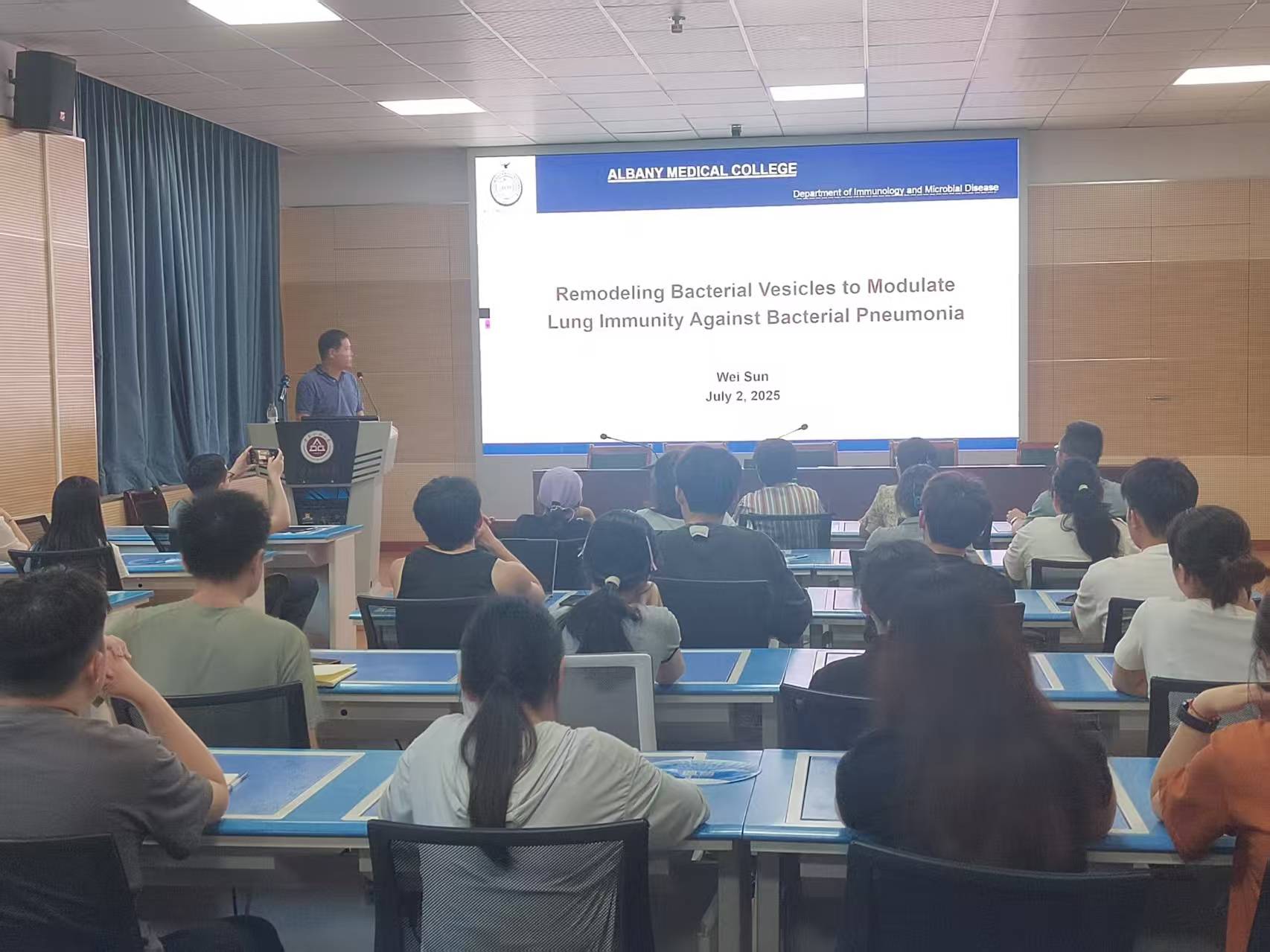 7月2日,美国奥尔巴尼医学院孙伟教授应邀来生物与食品工程学院作学术报告,并以“Remodeling Bacterial Membrane Vesicles to Modulate Host Immunity Against Bacterial Pneumonia”为主题,为我院师生带来了一场精彩的学术报告。本次报告会由生物与食品工程学院院长葛飞主持。