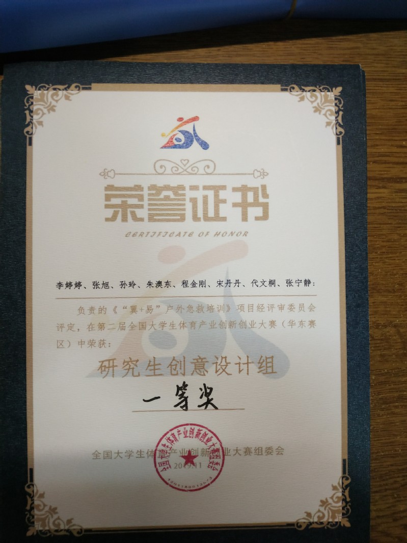我校两支研究生队伍在体育学院 体验产业学院教师薛保红、赵德勋的指导下参加此次体育产业创新创业大赛,并获得佳绩。其中,《“翼+易”户外急救培训》 项目荣获创意设计研究生组一等奖、《体验佳》项目荣获创业实践组研究生组二等奖。