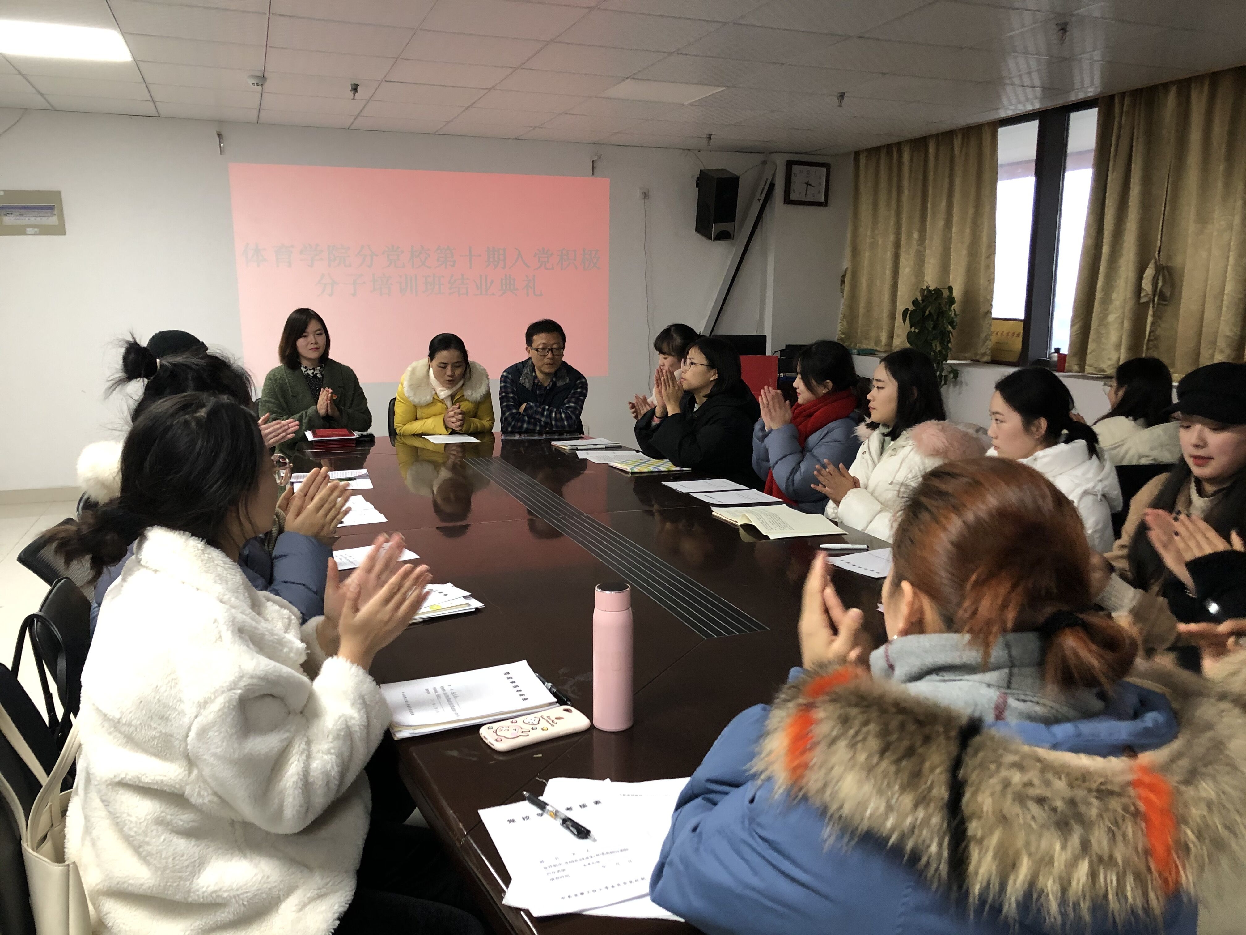 1224日下午,体育学院分党校第十期入党积极分子培训班结业典礼在415会议室举行。体育学院组织员王彦青、学生党支部书记黄蓉静以及本期培训班班主任孙霞参加了会议,会议由孙霞主持。