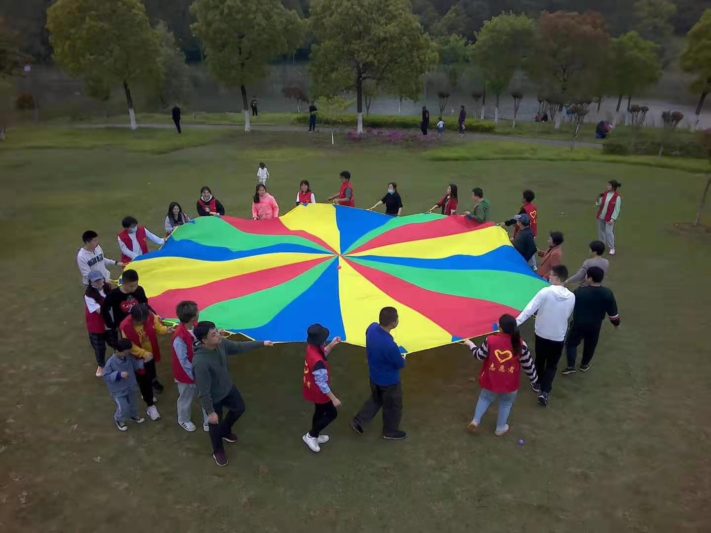 随后,他们又进行了一场“彩虹伞”的游戏,在彩虹伞一开一合的瞬间,所有人的耳边仿佛只剩下优美的音乐声与孩子们的欢笑声。