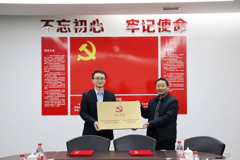 座谈交流中,双方分别介绍了各自党建工作特色,并对共建长效机制、实现协同发展共同进步、促进产学研合作、促进企业文化和高校思想政治建设相融合等方面进行了深入交流。杨善祥还特别向对方介绍了我校和体育学院近年来的发展概况和特色优势,并希望双方在深化产学研、大学生实习实践及就业方面加深交流合作。随后,双方领导举行了共建签约仪式,互赠了校企共建牌。