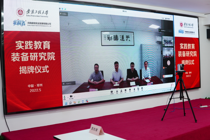 因为疫情防控原因,此次签约和揭牌创新性地采用了线上云签约的方式。签约仪式上,薛保红首先简要回顾了双方长达10年的良好的合作历程,并着重介绍了成立“实践教育装备研究院”的重要意义。他指出通过实践育人的基本途径,实现对人才综合素质的培养和德智体美劳全面发展是实践教育的根本任务。作为全国实践教育装备设备制造领域的领军企业,河南建培实业发展有限公司研发、设计、制造的实践教育装备设备在全国部分高校、中小学、实践基地和军队等取得了不俗的业绩和口碑。此次战略合作协议的签署,既能发挥学校在体验教育、营地教育、劳动教育、综合实践教育、服装设计等相关领域的工科院校的学科优势,又可以借助建培在实践教育装备设备制造领域的优势和权威,发挥双方在研究、实践和产业领域的优势,共同打造中国实践教育装备的第一品牌。
