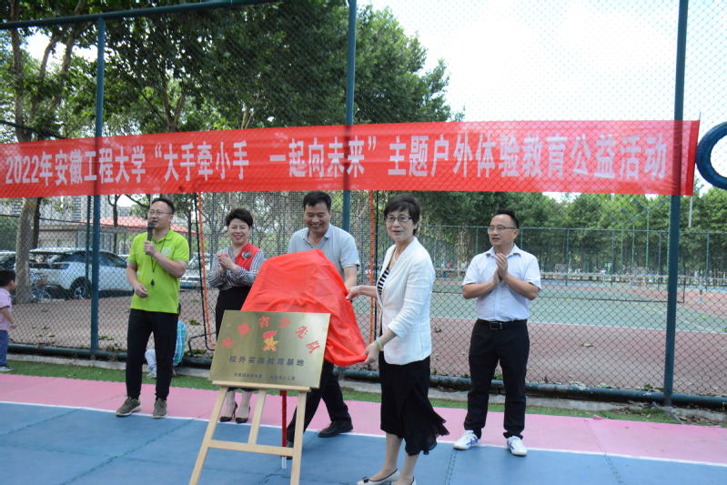 6月11日上午,“安徽省少先队校外实践教育基地”在学校水杉营地正式揭牌,校党委书副书记苏国红,校工会副主席张寅红、校团委书记郭广春、体育学院院长胡好、体育学院体验产业学院执行院长薛保红等参加揭牌仪式。