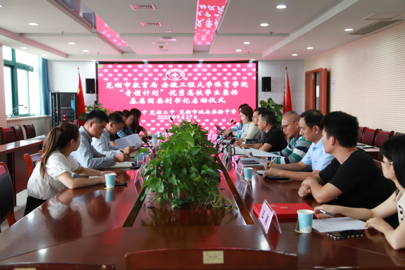 927日下午,体育学院、芜湖市教育局“青领计划”启动仪式在芜湖一中行政楼812会议室举行。芜湖市教育局二级调研员唐平、团委副书记孙希彦,体育学院副院长金庆红,体育学院体验产业学院副院长赵德勋,芜湖一中、二中、城南实验中学分管校长,相关部门团委书记及三名挂职大学生参加启动仪式。会议由孙希彦主持。