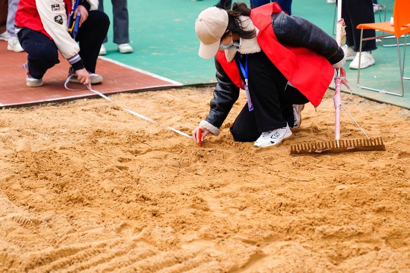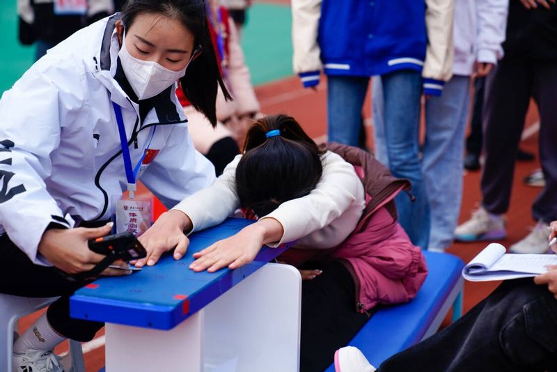 校第一届体测运动会是根据学校“三抓”工作要求,围绕学生“壮”起来,进一步推动落实“三全六专”工作,切实提升学生体质健康的具体举措。为保障体测运动会各项工作的顺利开展,运动会前,学院召开了专题培训会议,从运动会各项目的测量标准、仪器操作规范以及注意事项等方面对志愿者们进行了培训,明确了分工,熟悉了工作要求。运动会期间,志愿者们身着志愿者红马甲、佩戴工作证,认真做好场地布置、维持秩序、路线引导、扫码、检查核对学生证件等工作。志愿者们态度认真,尽职尽责,用贴心周到的服务为运动会的顺利举办保驾护航,在服务他人的过程中接受劳动教育,践行“勤”起来要求。