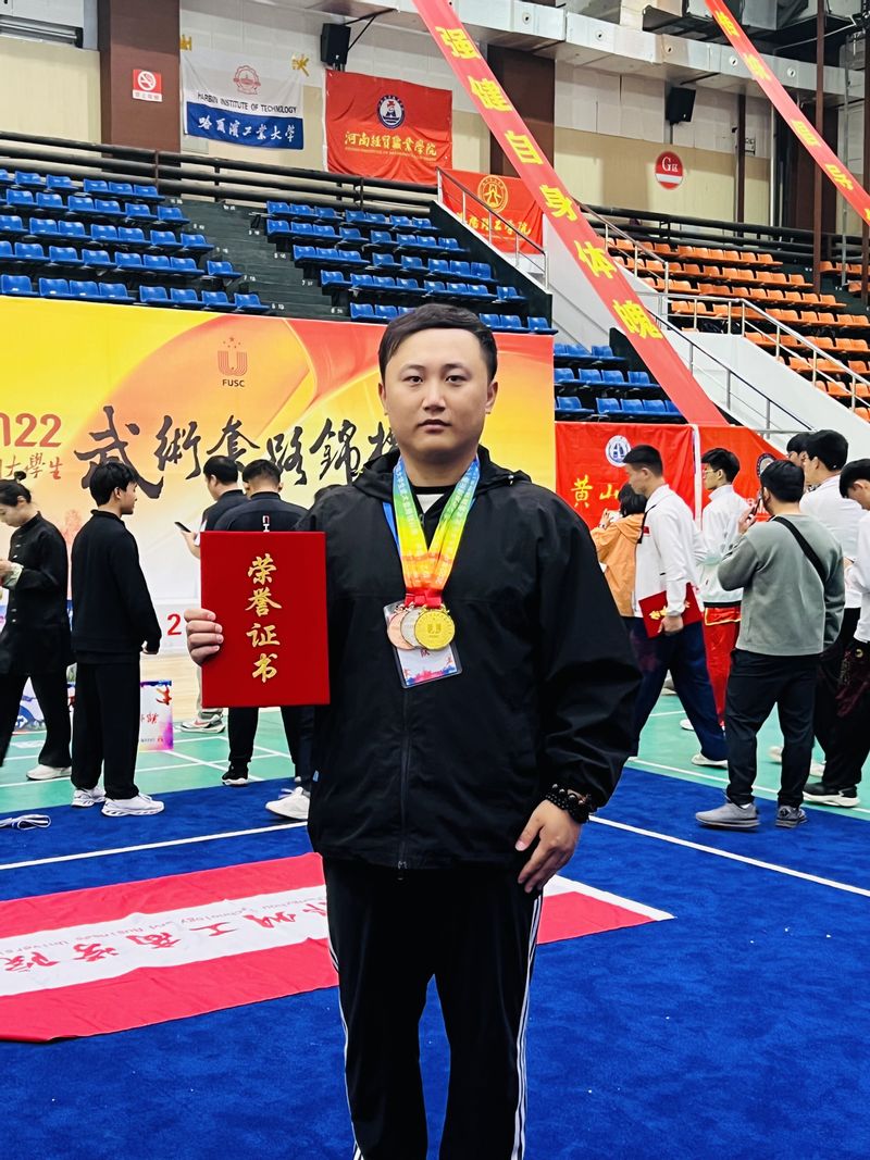 因疫情影响,由中国大学生体育协会主办的2022年中国大学生武术套路锦标赛于2023年5月13日在辽宁省辽阳市顺利完赛。我校武术代表队以优异成绩载誉归来。