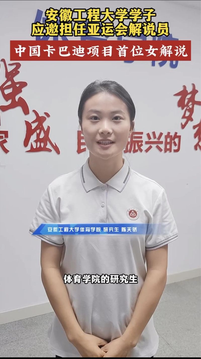 杭州第19届亚运会卡巴迪项目比赛102-7日在萧山瓜沥文化体育中心举行。体育学院研究生陈天骄经过选拔成功当选杭州亚运会卡巴迪项目解说员兼解说顾问。