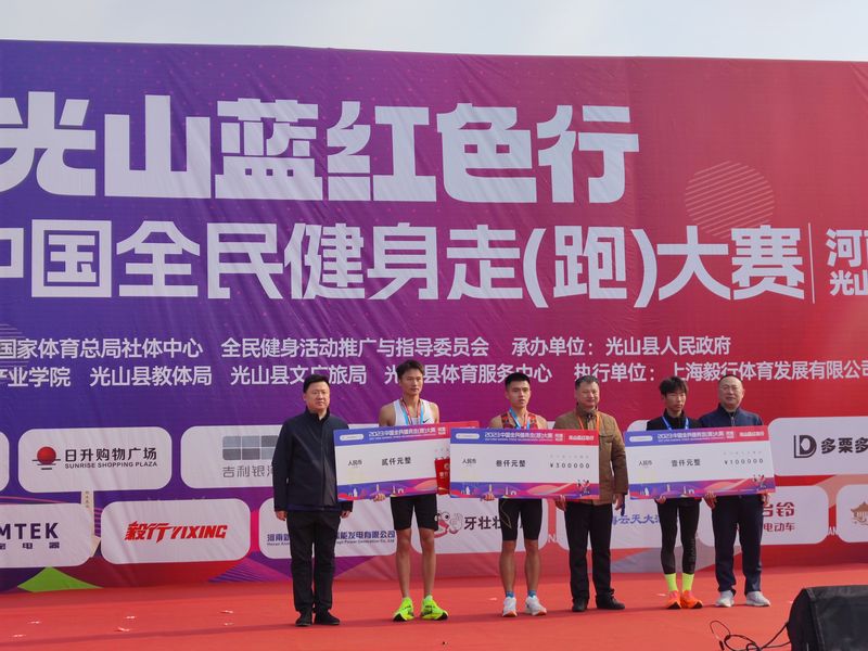 本次大赛设5公里健身走欢乐体验赛和20公里健身走(跑)挑战赛,20公里健身走(跑)挑战赛分男子组和女子组。各参赛选手带着对自我的挑战和对运动的热爱走进光山县,用运动的方式体验光山这座城市的无穷魅力。经过激烈角逐,余启航和李梦洁分别荣获20公里健身走(跑)挑战赛男子组和女子组冠军。谢叶寿和金庆红分别分别为获奖选手颁奖。