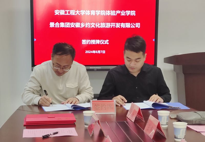 6月7日,体育学院与景合集团安徽乡约文化旅游开发有限公司共建乡村体验产业研究院签约授牌仪式在体育学院顺利举行。安徽景合集团有限公司总经理杨贺、安徽乡约文化旅游开发有限公司总经理张扬、安徽微浪网络科技有限公司总经理谢植宇,学校科技处副处长王勇、体育学院副院长谢叶寿、体验产业学院执行院长薛保红等出席签约授牌仪式。仪式由薛保红主持。