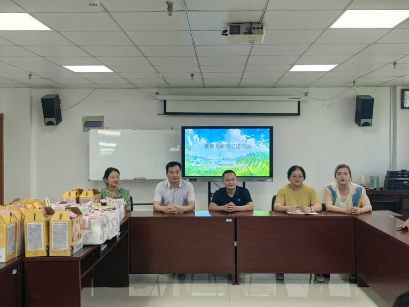 马晓琼、杜静歌、黄蓉静从安全管理、专业备考等方面与同学们进行了交流。随后,与会领导、老师为同学们送上夏日能量补给包等慰问品,大家纷纷表示谨记老师们的谆谆教诲,努力学习,不负青春,不负时光。
