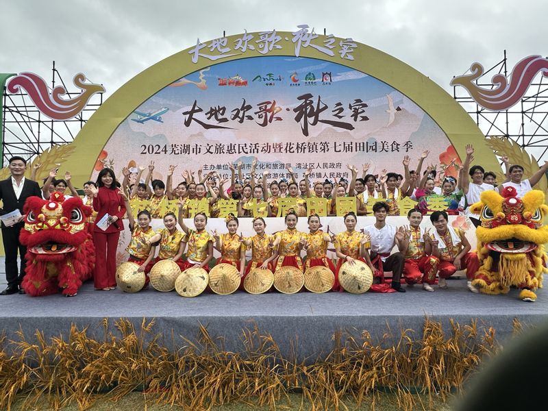 10月19日上午,芜湖市文化和旅游局、湾沚区人民政府主办,湾沚区文化旅游体育局、花桥镇人民政府以及湾沚区文化旅游产业高质量发展协会联合承办的“大地欢歌·秋之实”2024芜湖市文旅惠民活动暨花桥镇第七届田园美食季拉开了帷幕。活动在在美丽的芜湖市湾沚区花桥镇鸠兹湾艺创共富乡村举行。