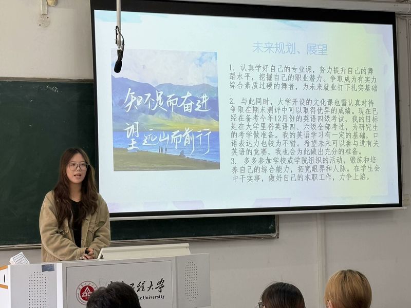 本次比赛受到同学们的广泛关注,比赛分为预赛和决赛两个阶段,预赛共有七十多名同学提交了大学生涯规划书,最后遴选出二十余篇优秀规划书的同学参加决赛。比赛现场,参赛者依次登台,通过PPT展示与演讲相结合的方式,对自身定位、专业情形、就业趋向以及大学四年具体目标与任务等方面进行了全面且深入的阐述。经过激烈角逐,表演 241 班汪玉荣荣膺一等奖;表演 231 班钱娜、范晶晶,表演 242 班纪婧雯荣获二等奖;表演 242 班鲁良彩、张淑媛、张慧,表演 243 班王楚越、刘楼获得三等奖。