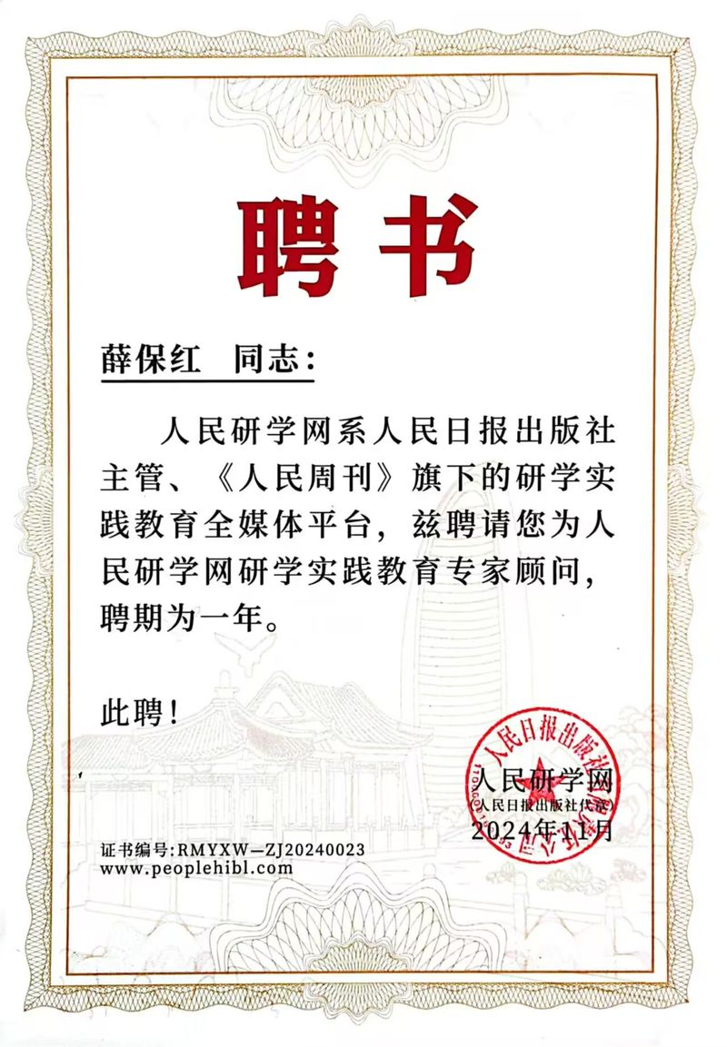 为贯彻落实二十大、二十届三中全会和全国教育大会精神,深入推进立德树人根本任务,人民日报社专门成立人民研学网,督导和提升全国研学实践教育活动高质量发展。我校体育学院教师薛保红同志因10多年坚持立足体验教育深入研究研学旅行工作,作为评审专家受人民日报社邀请参与研学基地和主题线路课程评选工作,并与来自全国的5位专家一同被聘担任人民研学网研学实践教育专家顾问。薛保红还作为专家顾问代表受邀接受了人民研学网的独家专访。
