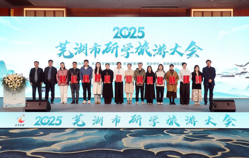 大会还发布了芜湖市精品研学旅游13项主题课程。体育学院研究生团队研发的《铁到芜湖自成钢》和《水泥奇缘》两门主题课程在大会中脱颖而出,被成功采纳。芜湖市文化和旅游局联合安徽出版集团向李登伸、陈珂、钱宇涵、陈袁、林邱慧、方芳多位创作者颁发聘书,聘请他们担任课程作者。这两门课程分别聚焦芜湖钢铁产业和水泥生产,通过实地考察与亲身体验,让学生深入了解工业制造背后的科学原理与文化内涵,成为展示芜湖工业文化的重要窗口。