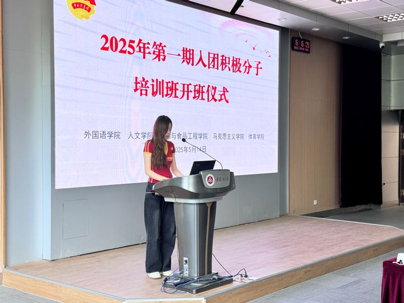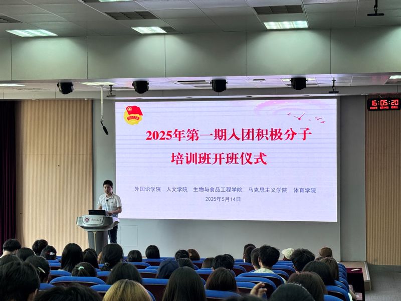 为做好入团积极分子教育培养,5月14日下午,体育学院、生物与食品工程学院、人文学院、外国语学院和马克思主义学院在5教117教室联合举行2025年分团校第一期入团积极分子培训班开班仪式。主办单位团委负责人、全体入团积极分子共计180余人参加开班仪式。仪式由体育学院团委书记范同军主持。