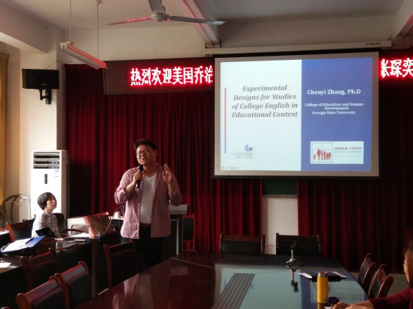 5月2日,知名校友美国乔治亚州立大学教育与人类发展学院终身副教授张琛奕博士应邀回母校,为外国语学院师生作了两场学术报告。