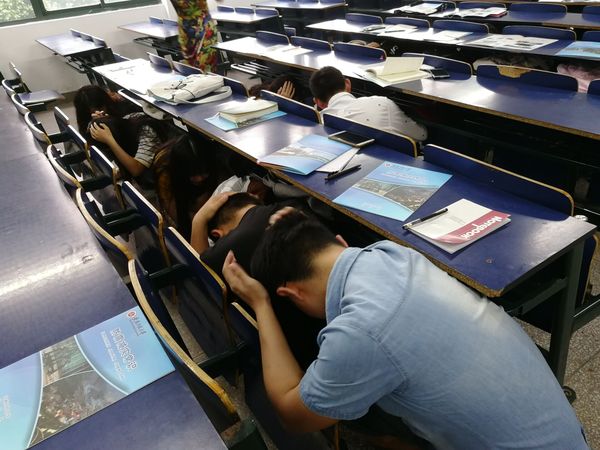 为了进一步加强我院学生安全工作,提高安全防范意识,增强自我保护能力,提升同学们对地震、火灾等突发事件来临时的应变逃生能力。5月25日下午,外国语学院在5教302教室开展了防震减灾应急疏散演练活动,2017级全体寝室长参加演练。