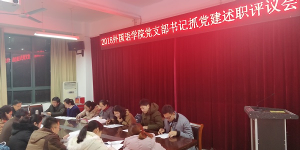 为深入学习贯彻习近平新时代中国特色社会主义思想和党的十九大精神,全面落实全国组织工作会议和全国教育大会精神,促进基层党组织建设,根据学校党委统一部署,12月20日下午,外国语学院党委在9J209党员活动室召开支部书记抓党建述职评议会议。学院党委委员、党支部书记、科级以上干部以及部分师生代表参加了会议。会议由党委书记魏长顺主持。