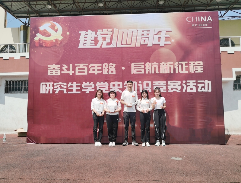 本次比赛于2021年5月9日上午9:30,在第一田径场开始。此次竞赛由校研究生部组织举办,目的是引导全校研究生了解党的光辉历史、感悟党的初心使命、传承党的红色基因。竞赛设置四个赛点,需队长和每位队员合作,每位队员接力完成,十分考验团队成员的默契与能力。外语系翻译硕士团队赛前充分准备,赛中分工明确、各司其职,默契十足,每个赛点都交了满意的答卷,最终在15个团队中脱颖而出,取得佳绩!