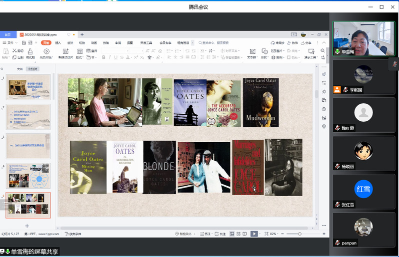 单雪梅作了题为《乔伊斯•卡洛尔•欧茨作品研究》的报告,从为什么要研究欧茨及其作品,欧茨作品主题,欧茨研究动态,及后续研究关注四个方面结合自己的研究成果,对国内外关于欧茨的研究做了梳理,同时对美国文学研究阐述了独到的理解。