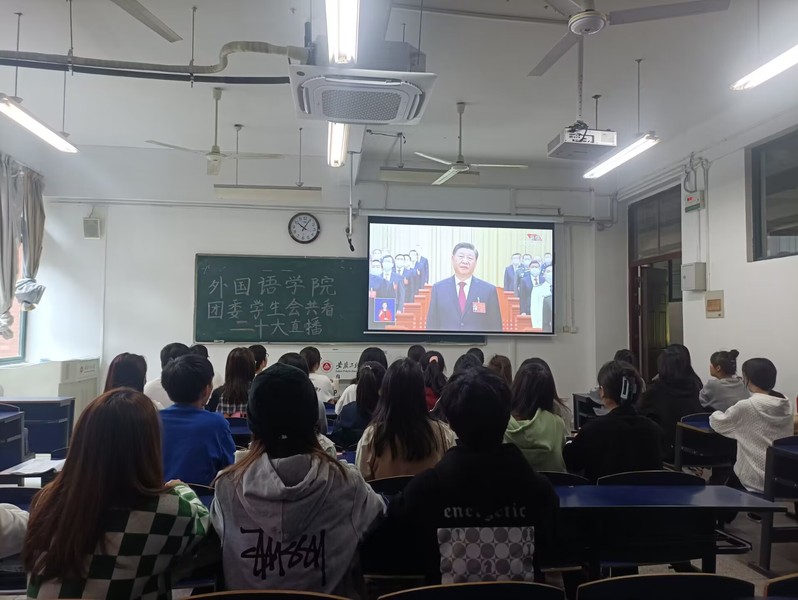 10月16日,中国共产党第二十次全国代表大会于上午10时在北京人民大会堂开幕。习近平总书记代表十九届中央委员会向大会作报告,李克强主持大会。本次大会是在全党全国各族人民迈上全面建设社会主义现代化国家新征程、向第二个百年奋斗目标进军的关键时刻召开的一次十分重要的大会。外国语学院师生热切关注大会盛况。10月16日上午,外国语学院党政领导班子与全体教职工在9教103,全体研究生在9教508,学生党员、入党积极分子、学生干部在6教108集中收看大会开幕会实况。学院广大青年学子也采取多种形式收听收看大会开幕会。