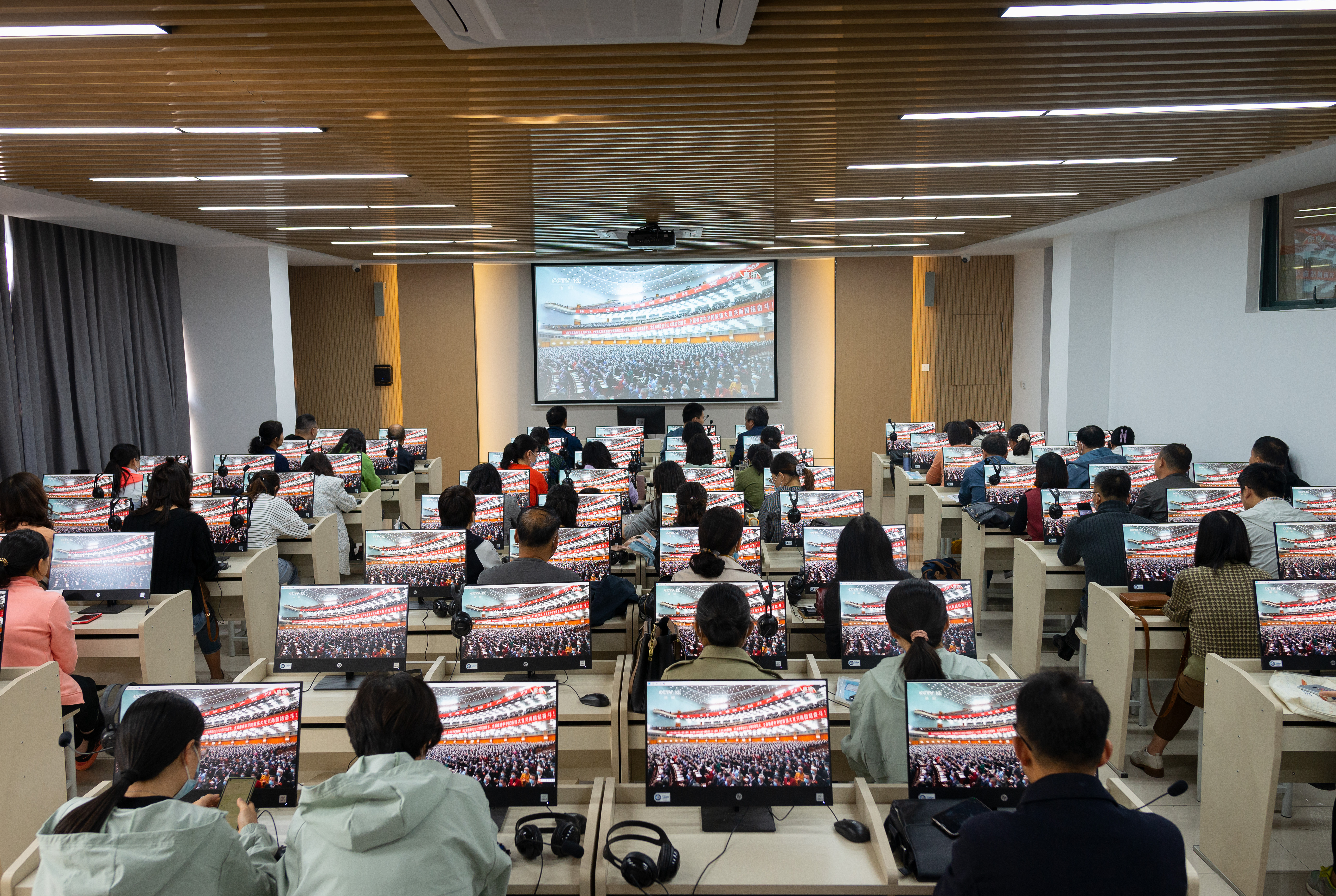 10点大会开幕,收看直播的同志们全体起立,高唱国歌。全场同志全程认真聆听、深入学习领会。当习近平总书记报告结束时,同志们随着现场代表一起长时间热烈鼓掌,表达对这次团结、胜利、奋进的空前盛会的祝贺,表达对总书记的高度信赖、坚决拥护和衷心爱戴。