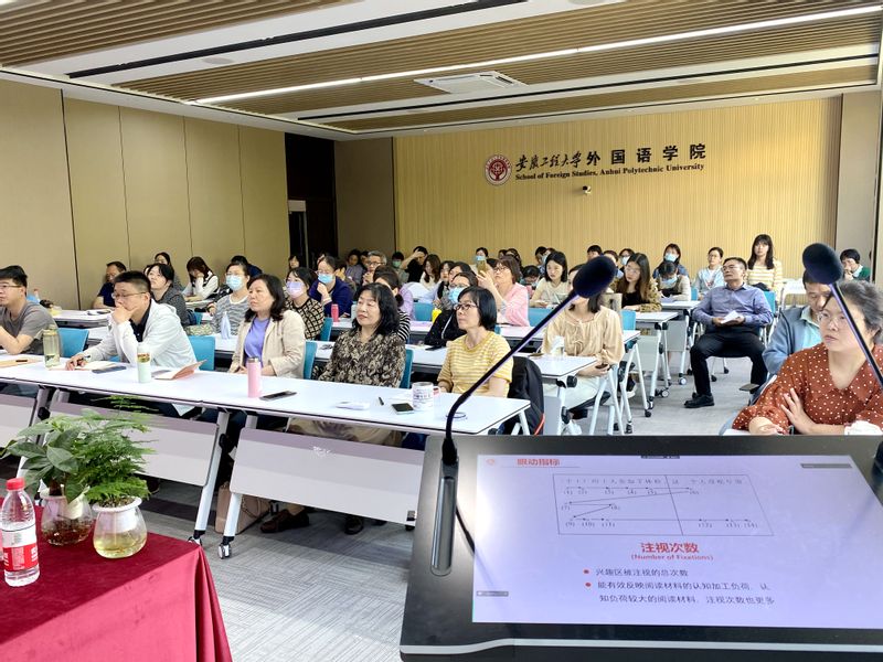 报告会上,王小潞首先从“眼睛是对内心的反映”机理出发,介绍了国际、国内阅读眼动研究的发展阶段、研究现状和关注指标,说明了开展汉语阅读眼动研究的必要性。接着,王教授从字词层面、句子层面、语篇层面和不同文体汉语阅读等方面详细分析了阅读眼动研究。最后,从反语表达对肯定/否定数量词“聚焦效应”的影响层面,王教授详细阐述了汉语篇章阅读中反语认知的心理机制研究情况,此项研究证明了在反语认知加工过程中,与语境不相符的字面义会被保留继续参与后期加工,语境是促使认知主体作进一步推理并制约认识主体朝反方向解读字面义的关键因素。