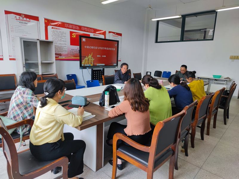 5月17日下午,外国语学院院长金成星为大学英语第二教学部教师党支部全体党员上了一堂以《中国式现代化与外语学科高质量发展》为题的党课。