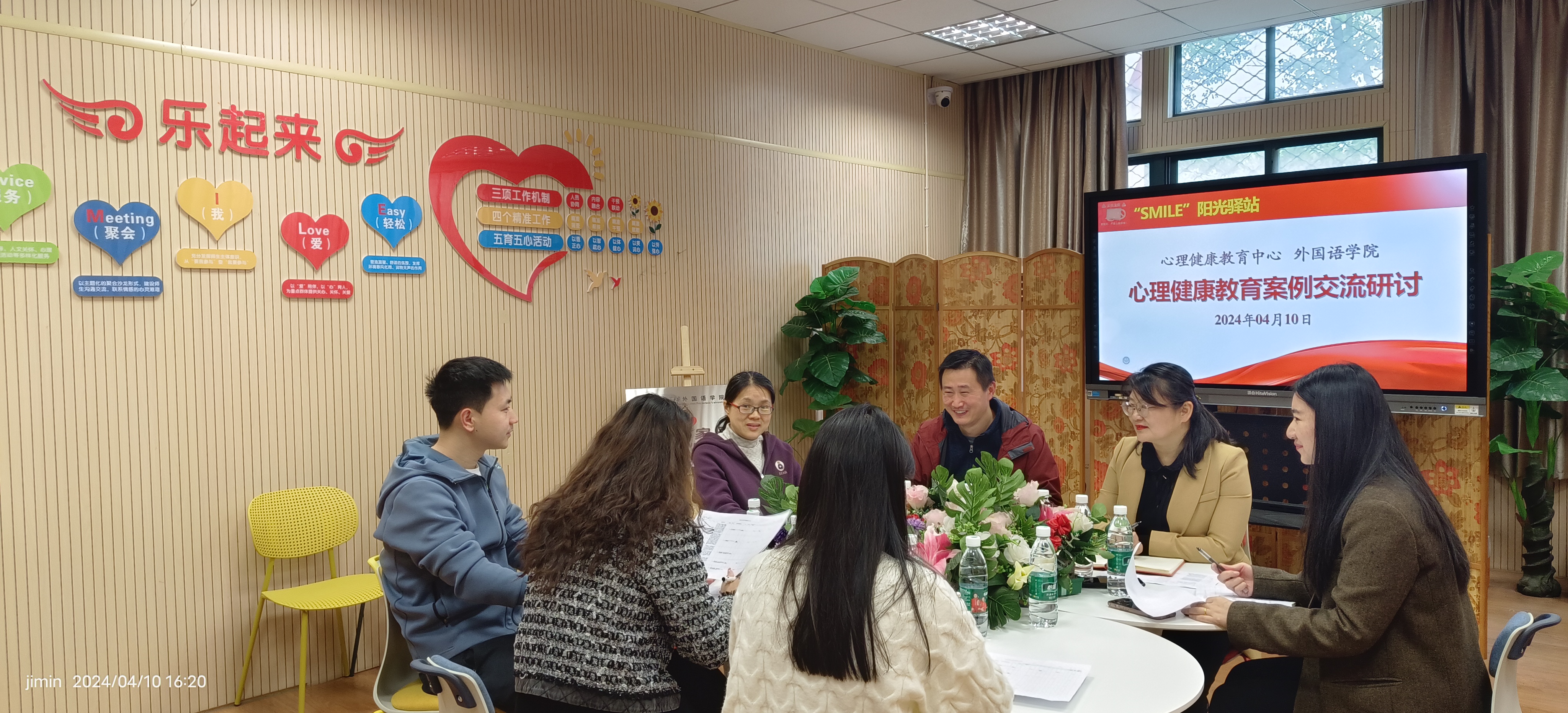 为推进学校“三全六专”育人实践“乐起来”专项工作要求,促进学生身心健康发展,4月10日,校心理健康教育中心主任金艾群、副主任杜松涛一行3人应邀到外国语学院“SMILE”阳光驿站与外国语学院学工团队开展心理健康教育案例交流研讨。