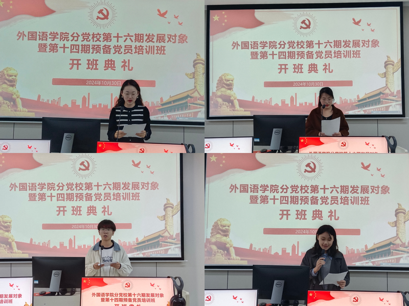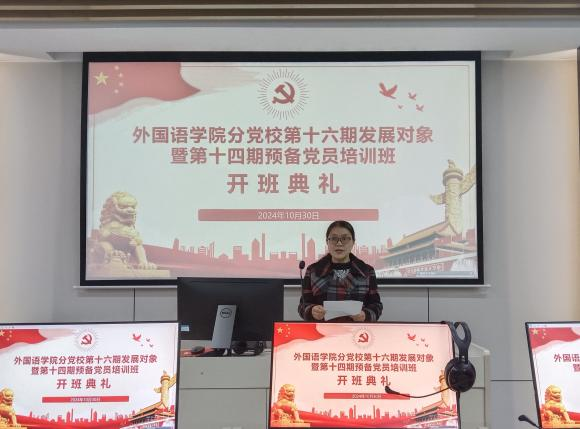 10月30日,外国语学院第16期发展对象培训班暨第14期预备党员培训班开班仪式在9教103教室举行。校党校第三督导组组长许晓菁,学院党委副书记李校林,学院辅导员及全体学员参加开班仪式,仪式由培训班班主任陈小庆主持。