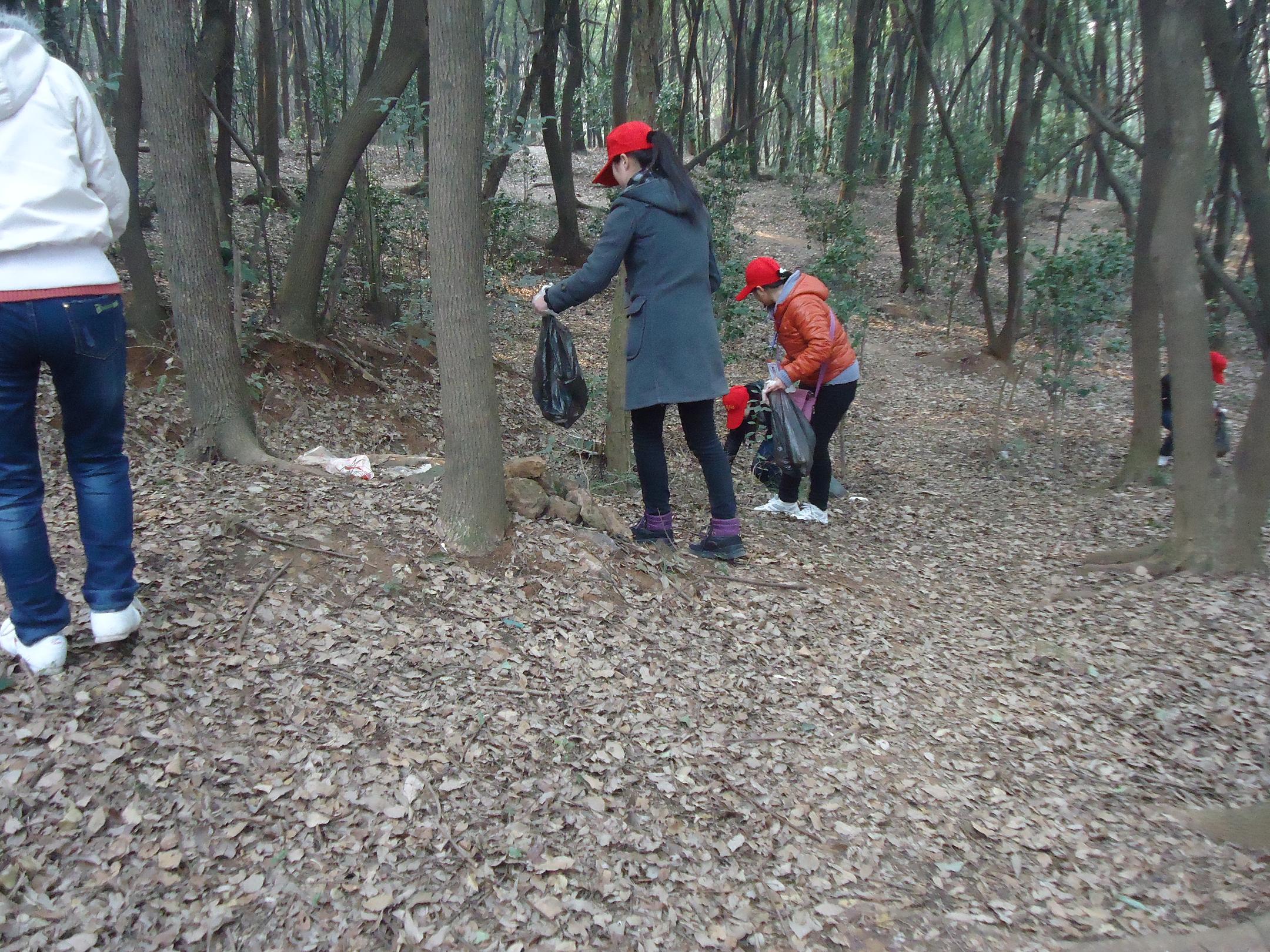 大家分成四队向上爬,认真清理着山坡上被人们丢弃的各种垃圾。每个人都尽心尽力,尽管途中有人觉得很累,但是没有人抱怨,也没有人停下手中的工作,大家都是一路坚持到了山顶。看着我们带的垃圾袋全部装满了“战利品”,清理过的公园整洁干净,周围的市民也发出了由衷的称赞。