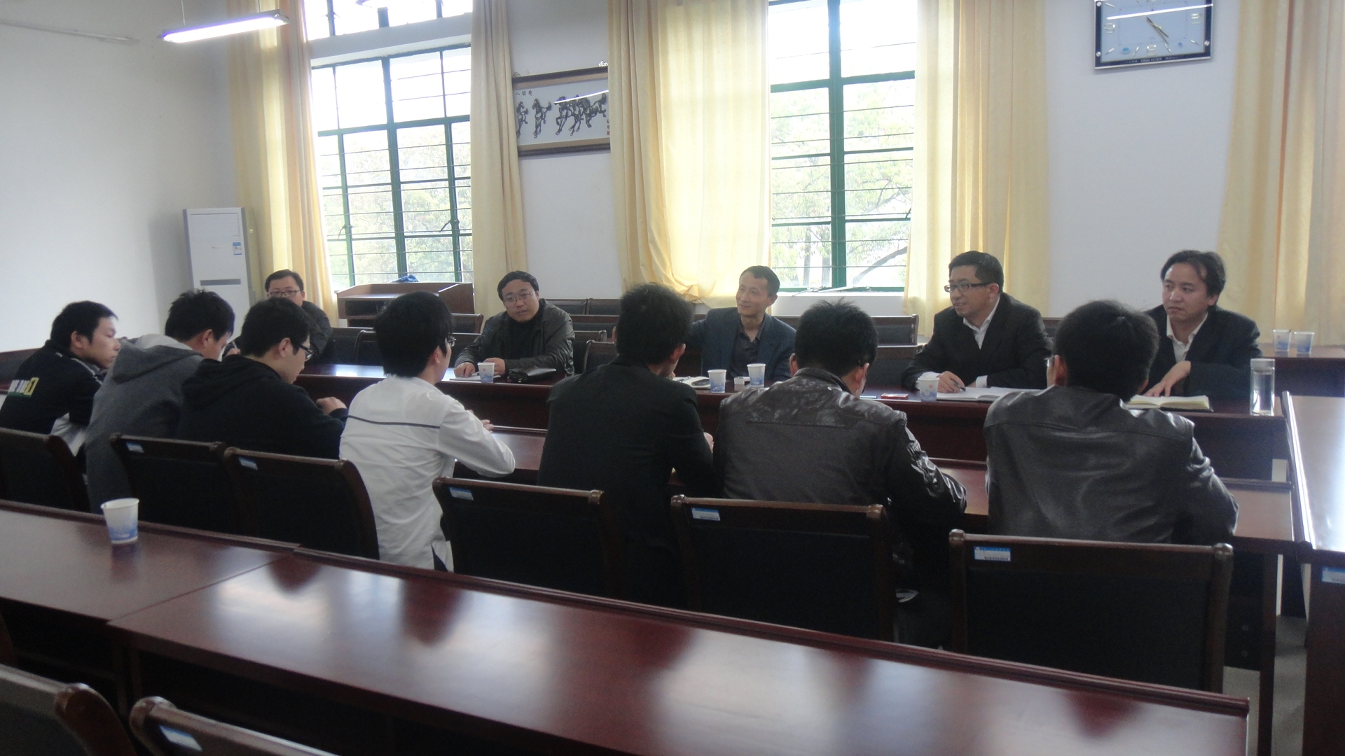 在第二阶段会议上,七名毕业生代表从各自的角度谈了自己就业的情况、就业过程遇到的问题与困难、下一步的就业设想等。王河、李卫东一行就大家提出的问题,给予了详细的解答与专业的指导,勉励同学们在就业过程中积极应对各种挑战,发挥自身优势,抢抓就业机会,并就毕业生共同关心的问题与同学们进行了面对面深入地交流。